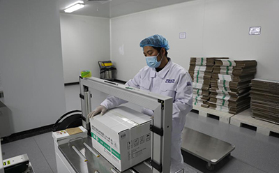 工人日報客戶端1月4日電 1月3日中午,在北京生物制品研究所分包裝車間,工人正把24盒已經裝箱的新冠病毒滅活疫苗用白...